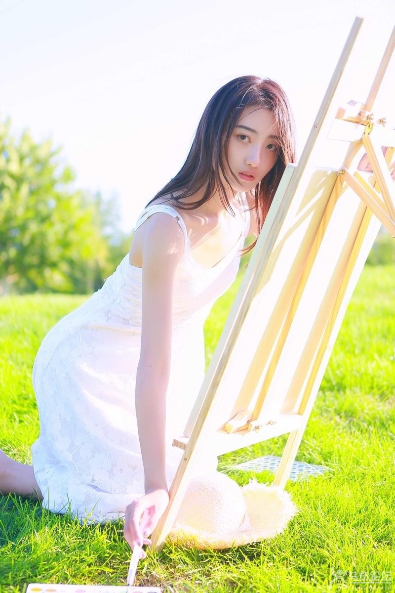 清純長發(fā)少女白色吊帶長裙氣質(zhì)迷人