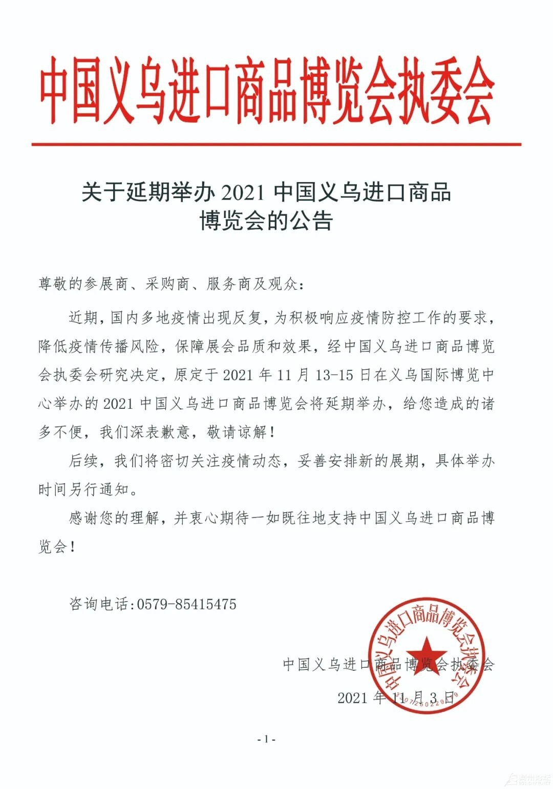 2021中國(guó)義烏進(jìn)口商品博覽會(huì)延期舉辦