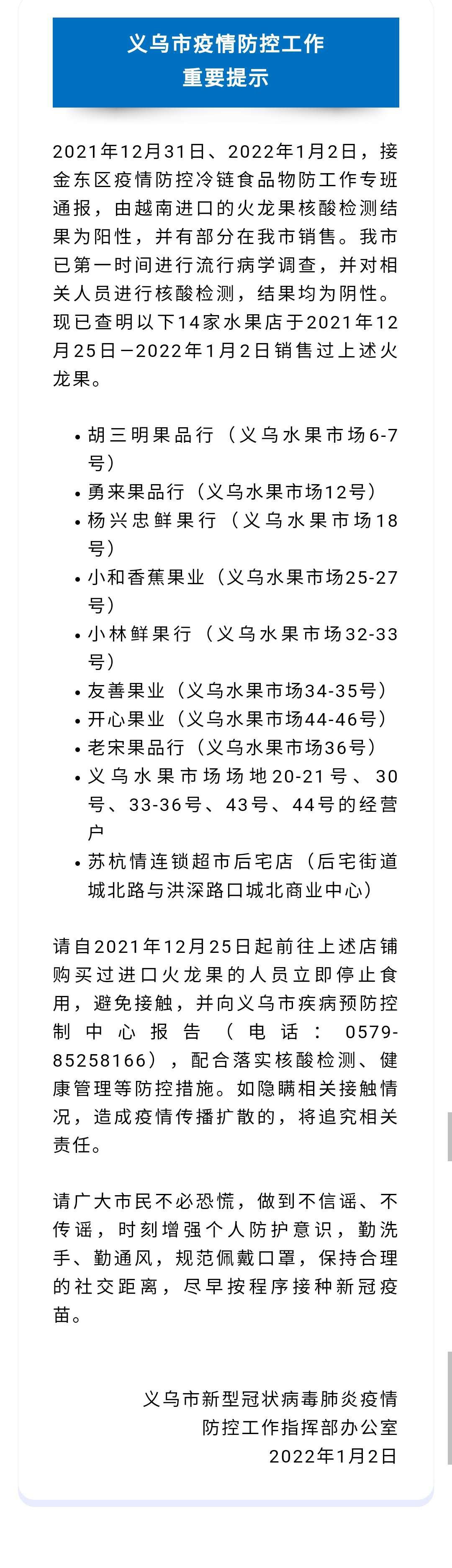 義烏流入涉疫進口火龍果!14家水果店銷售過…
