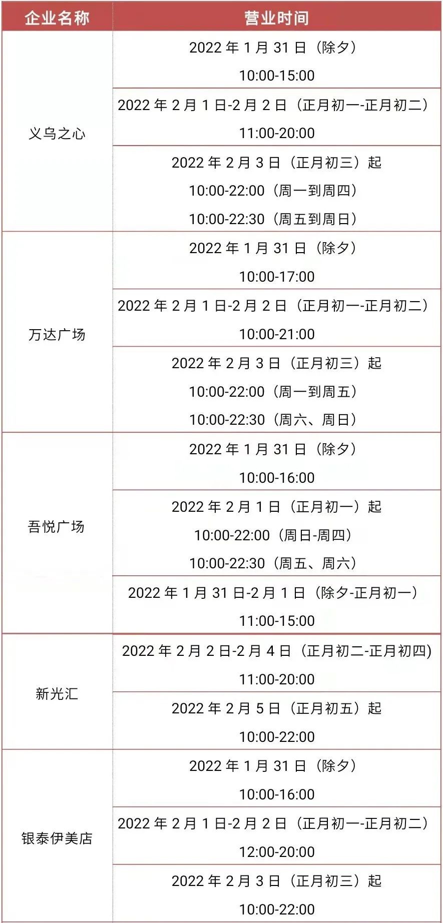 廣大消費者:為營造良好消費環(huán)境,豐富節(jié)日期間商品供應(yīng),滿足廣大消費者的消費需求,現(xiàn)將我市主要大型商超2022年春節(jié)期間營業(yè)時間公告如下(營業(yè)時間若有變化,請以商超公告為準(zhǔn)):