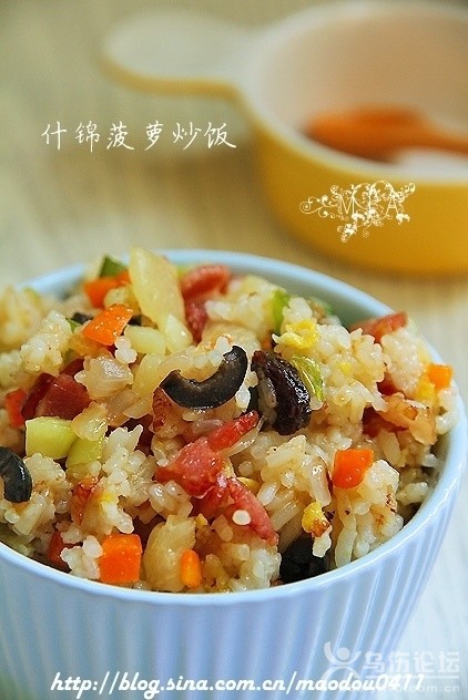 原料:米飯 菠蘿(罐頭) 葡萄干 黑橄欖 青椒 洋蔥 胡蘿卜 芥蘭 雞蛋 培根 調(diào)料:鹽 白蘭地(可不加) 事先準(zhǔn)備: 1. 雞蛋打散。 2. 芥蘭、洋蔥、胡蘿卜、青椒、菠蘿、黑橄欖、培根切丁。 ...