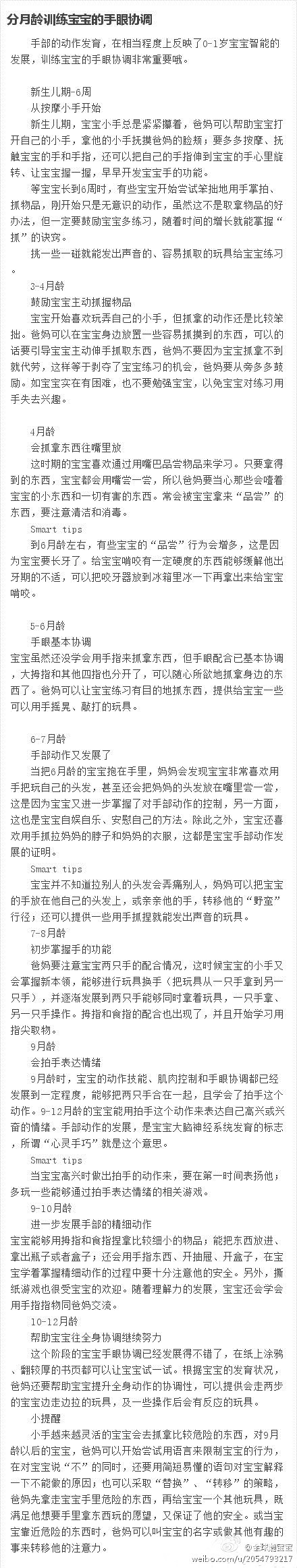 手部的動(dòng)作發(fā)育,在相當(dāng)程度上反映了0-1歲寶寶智能的發(fā)展,訓(xùn)練寶寶的手眼協(xié)調(diào)非常重要,麻麻們知道了嗎?
