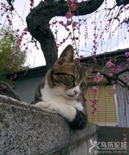 這個(gè)感覺是這只貓想出墻。也許是聞到桃花的味道。也想走桃花運(yùn)吧