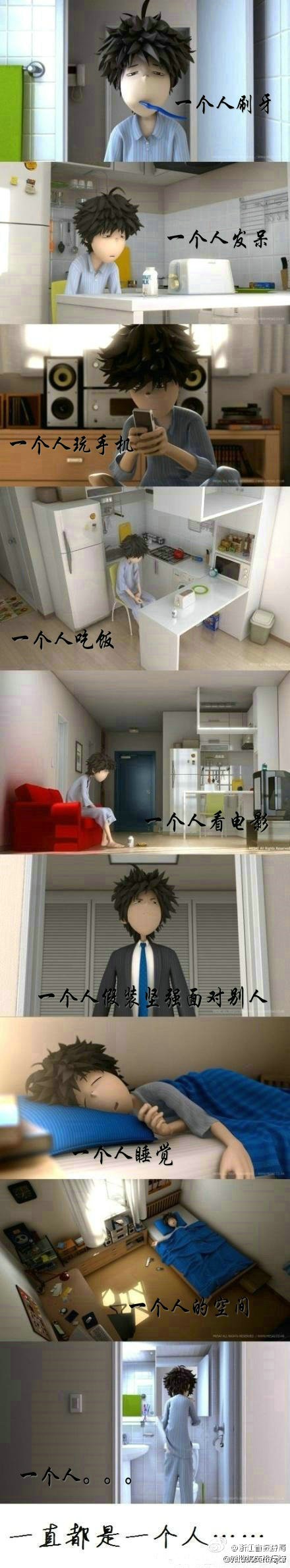 剩男剩女們,不必著急知別單身,一個人有一個人的好處,可以 1室1廳1人住,1菜1湯1人吃,1枕1被1人睡,1來1去1人過,1衣1襪1人洗,1喜1憂1人愁,1工1作1人累,1事1擔1人承,1影1視1人看,1薪1酬1人花,1心1意1身輕 ...