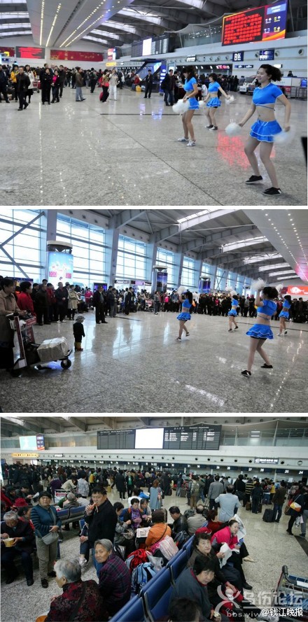 【別煩,看美女跳段舞】昨日,由于大霧的影響,大連機場滯留旅客達5000余人。為穩(wěn)定旅客情緒,機場派出美女拉拉隊員跳健美操。效果不錯,引得眾旅客圍觀。據(jù)悉,大連機場新組建的美女拉拉隊,是專為在特殊天氣時,調(diào) ...