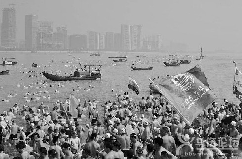 8月12日上午,一年一度的橫渡錢塘江活動在錢江新城城市陽臺舉行。9時剛過,義烏市游泳協(xié)會的150名游泳愛好者與來自各地的游泳愛好者一起跳入江中。橘黃色浮標(biāo)在水面依次鋪開,在波光粼粼的江面上,千余名“浪里白條 ...