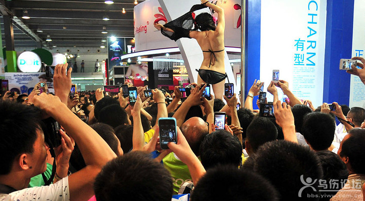 廣州性文化節(jié)開幕,商家請來了鋼管舞女郎現(xiàn)場表演鋼管舞,并拋灑安全套,引起現(xiàn)場的市民哄搶。